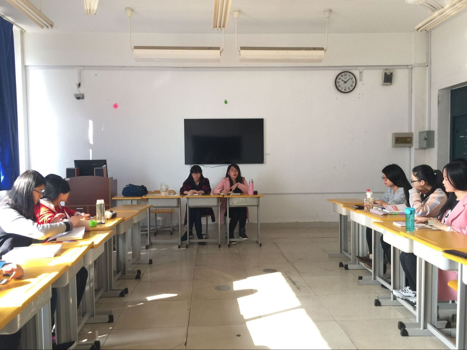 此次座谈会主要针对学员们在参加学院党的理论课程后遇到的各类问题进行解答。首先,全体积极分子学员对乔艳丽同志、张志颖同志的到来表示了热烈欢迎,并各自做了自我介绍,帮助两位党员加深对此次党课学员的了解。接下来,党员乔艳丽同志就学员们在党知识方面的各类问题做了细致的解答。从乔艳丽同志的讲解中,我们了解到了党组织对党员和积极分子教育的注重程度。乔艳丽同志讲到,一名党员的责任重大,而成为一名党员的道路也十分艰难。随后,张志颖同志对乔艳丽同志的讲解做了相应补充,并对怎样一步一步发展成为党员等方面问题做了讲解。张志颖同志通过一名预备党员的入党材料为实例对学员进行了细致的解说。从中,学员们了解到了从提交入党申请书到最后填写入党志愿书的整个流程,也意识到了加入中国共产党是一件庄重和严肃的事情。最后,学员们对当今生活中党的思想理论建设方面的一些疑惑向两位党员同志询问,两位党员同志耐心地做出了解答。至此,此次党员座谈会落下帷幕。