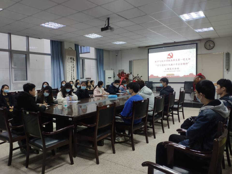 本站讯 为深入学习贯彻党的十九届六中全会精神,深化拓展党史学习教育,11月26日下午,本科生第一党支部召开“学习党的十九届六中全会精神”主题党日活动。党支部书记赵宇轩主持活动,支部全体党员参加。