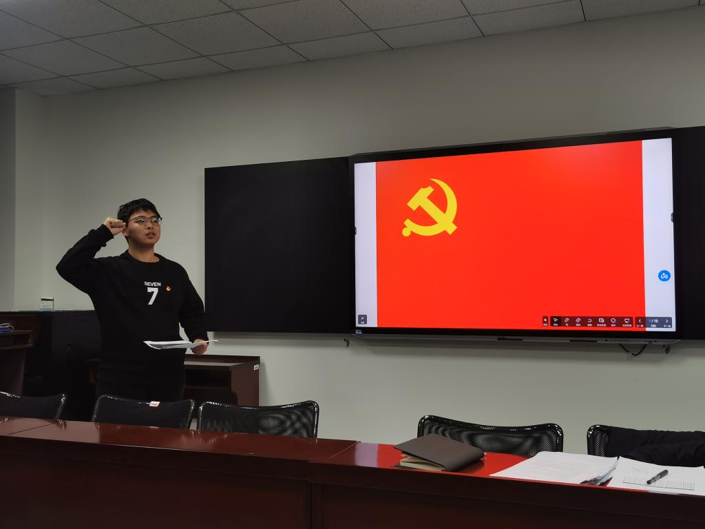 活动最后,党员代表陈嘉呈同志带领与会党员重温入党誓词,铿锵的誓言彰显着支部党员的决心和态度,将深入学习,不负使命,争做党的二十大精神的坚定信仰者、有力传播者和忠实践行者。
