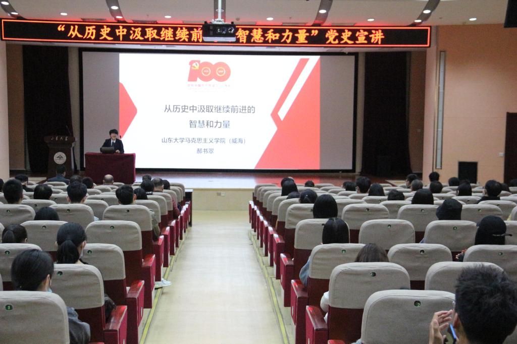 本站讯 5月6日下午,澳门十大网投平台排行与澳门十大网投平台排行澳国立联合理学院于闻天楼东报告厅联合举办党史宣讲会。校区党史学习教育宣讲团副团长、马克思主义学院(威海)党委书记郝书翠做“从历史中汲取继续前进的智慧和力量”宣讲报告。澳门十大网投平台排行党委书记于振涛主持宣讲会,两个学院部分教职工、学生党员和入党积极分子聆听了报告。