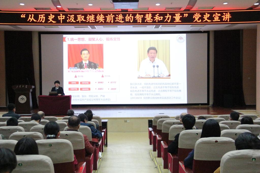 宣讲会上,郝书翠以习近平总书记在党史学习教育动员大会上的讲话精神为切入点,从“统一思想、凝聚人心、锻炼党性”,“学史明理、学史增信、学史崇德、学史力行”和“树立正确党史观”三个层面指出全党学习党史的深意。随后,郝书翠从毛泽东《如何研究中共党史》一文的启发、百年大党的历史经验、创新方式方法传承共产党人精神谱系等方面展开,她结合百年党史的革命岁月、建设时期、改革年代及新时代,呼吁共产党人应凝聚起来,有共同的理想信念并为之舍身奋斗。她带大家回顾了革命英雄夏明翰舍身救国的壮烈故事,讲述了“三千孤儿入内蒙”的感人故事,由此阐述了讲好党史故事蕴含的信仰伟力、为民情怀和制度优势。整场宣讲会层层深入,论证事例生动形象,贴近生活,发人深省,激励广大师生党员秉承马克思主义的世界观与方法论,用锐利的眼光透视时代风云,用长远的眼光洞悉社会发展,为之后党史学习教育的开展树立了标杆。