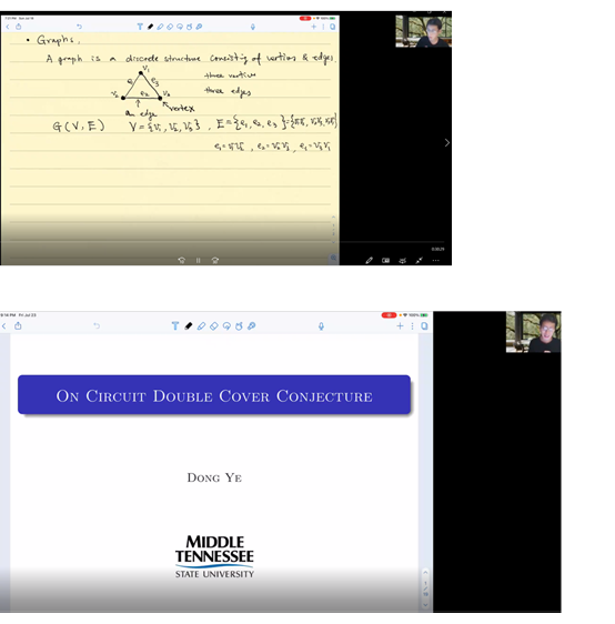 本课程共16学时。在此期间叶东教授全程英文讲授了离散数学核心内容及前沿课题,从图谱理论到流理论及双圈覆盖,再到他们的具体应用。叶东教授语言流利、发音标准,讲课思路清晰、深入浅出、十分透彻。通过学习离散数学课程,同学们均表示受益匪浅,不仅掌握了离散数学的核心内容,更激发了对图理论及其应用的兴趣,在心中种下了科研的种子,还开阔了视野,提高了英语能力,体验到了学者的风采和数学的真谛。课程结束后,应同学们的要求及亓兴勤教授的邀请,叶东教授于7月24号给大家又做了一场题为《On Circuit Double Cover Conjecture》的学术报告,深入浅出的介绍了图论中的双圈覆盖猜想,加深了同学们对图论的理解。