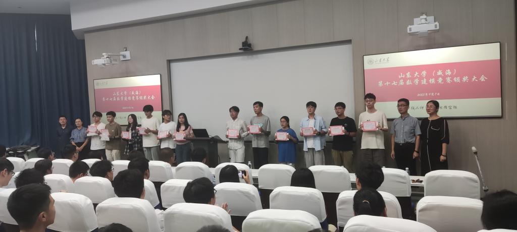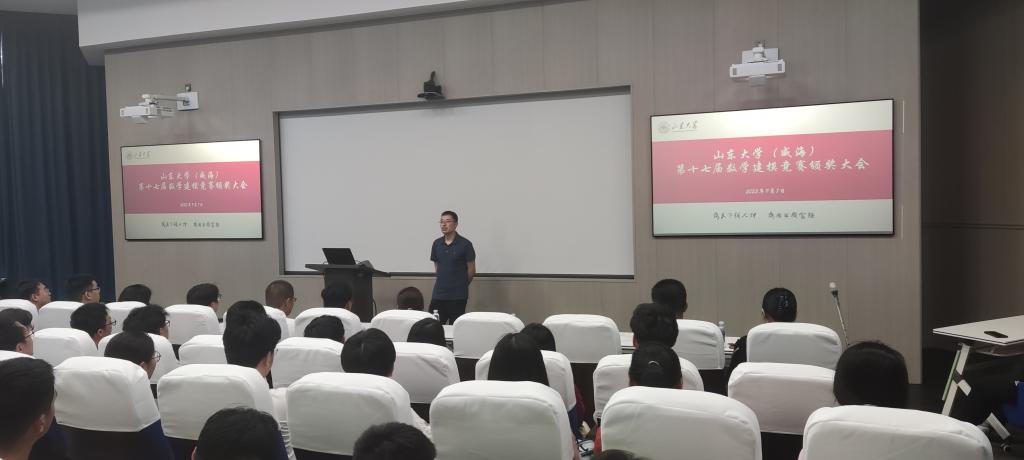 2023年9月7日下午,澳门十大网投平台排行在网络楼报告厅召开了2023年澳门十大网投平台排行(威海)第十七届数学建模竞赛颁奖大会暨2023年全国大学生数学建模竞赛动员大会,对在前期校级数学建模竞赛中获得一等奖的同学进行了表彰。奖品赞助企业中科曙光高性能计算集群事务部总经理卜景德、学院党委书记于振涛、副书记王鹏飞、副院长亓兴勤、学院数学建模负责人曹祝楼及王育松出席会议,澳门十大网投平台排行(威海)第十七届数学建模竞赛获奖学生参加了会议。