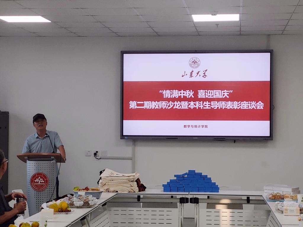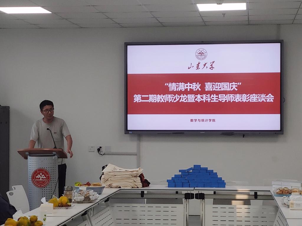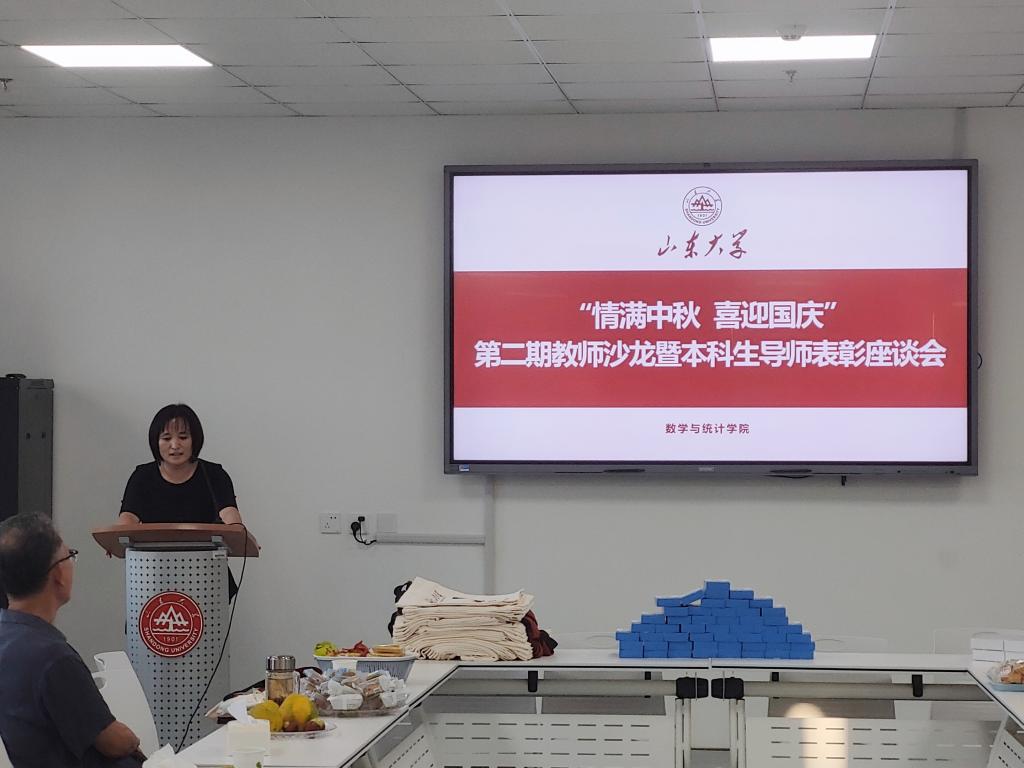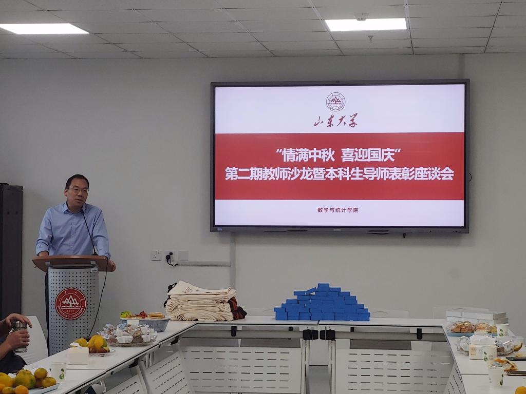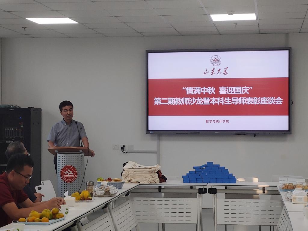 本站讯 中秋、国庆“双节”来临之际,为全面落实立德树人根本任务,提升学院本科生导师工作实效,9月28日下午,澳门十大网投平台排行于北衡楼1420室举办“情满中秋 喜迎国庆”第二期教师沙龙暨优秀本科生导师表彰座谈会。学院党委书记于振涛、常务副院长齐海涛出席活动并致辞,学院党委副书记王鹏飞主持,各教学系本科生导师、工会小组成员参加活动。