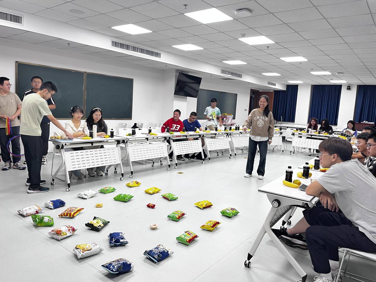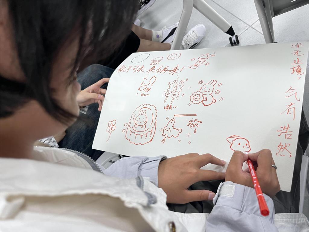 学院为与会同学准备了月饼、水果等节日小食,精心设置了“同心圆”套圈挑战赛、“击鼓传花”诗词飞花令、“跃然纸上”画图展心扉等暖场游戏。座谈会中,同学们畅谈收获体会,交流同窗情谊,活动现场气氛热烈,与会同学参与热情高涨。