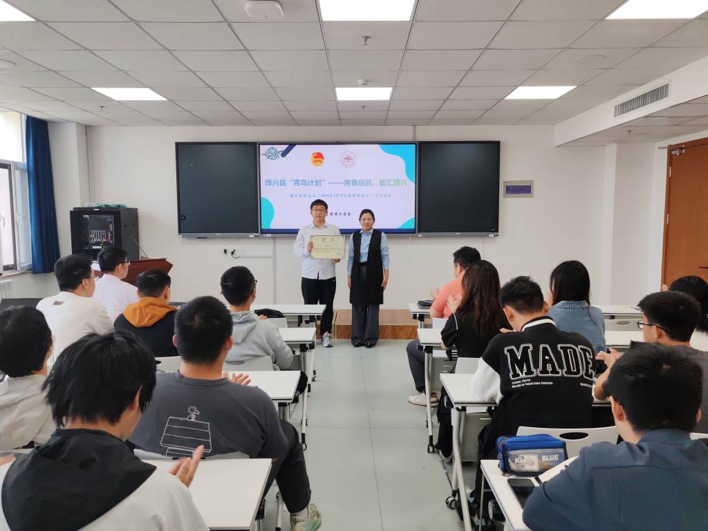 活动现场,团博兴县委书记郭聪莹为博兴籍学生代表付蓝昊颁发了“青鸟计划”青鸟驿站站长聘书,针对同学们提出的疑问进行了解答,为前来咨询人才新政的大学生做了全面解读,在场的同学们受益匪浅。