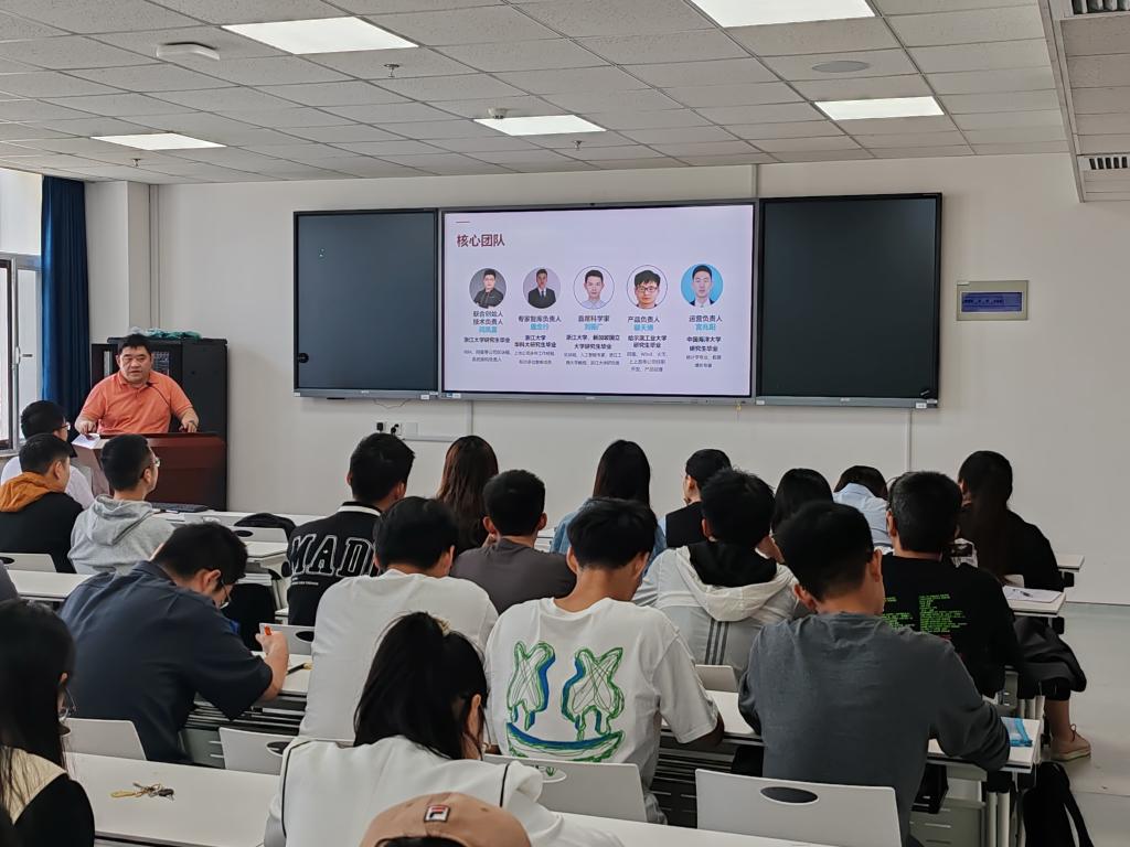 人堆网络有限公司创始人戴延涛结合自身创业经历,介绍了人堆网络有限公司的发展经营情况,鼓励同学们尽早开展职业规划,明确目标,积极创新创业。
