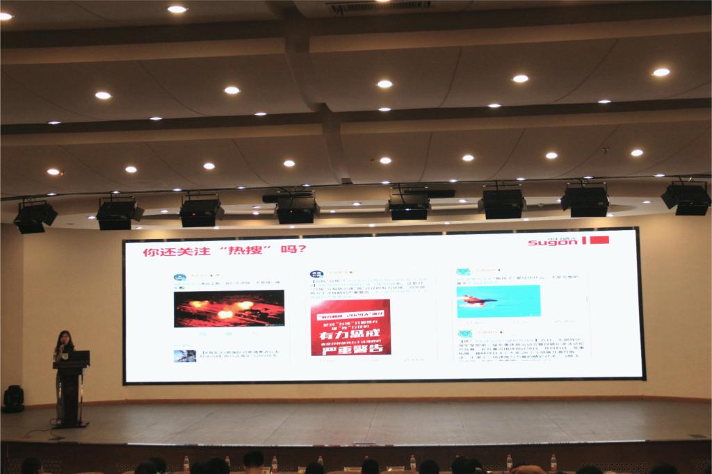 报告会在庄严的国歌声中拉开序幕。报告会通过五四成果视频展示,回顾了2023年学院学生在科研创新、学术专利、社会实践等领域取得的丰硕成果。中科曙光工程师王晓珍为在场的师生带来了精彩的科创报国思政课。她分析了当今世界前沿科技的形势以及中国龙头企业奋斗的现状,介绍了中科曙光历尽艰辛而百折不挠的发展历程,以此鼓励青年学生大胆科研,勇于创新,为国家的科技自主化建设贡献力量。