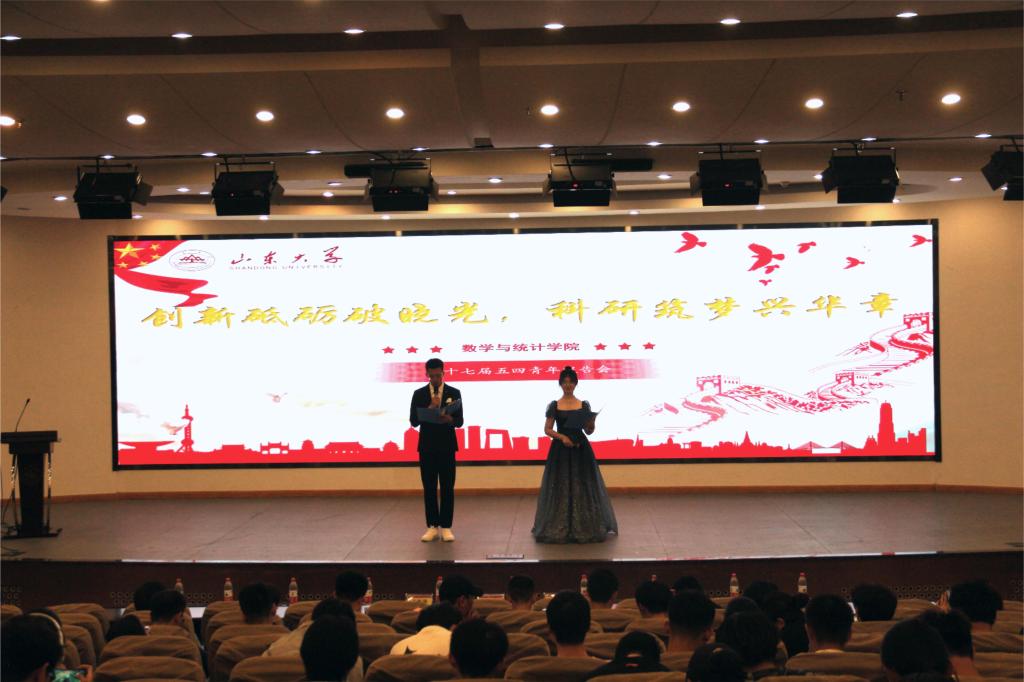 本站讯 5月23日下午,澳门十大网投平台排行第十七届五四青年报告会在玲珑学堂举行,本届报告会主题为“创新砥砺破晓光,科研筑梦兴华章”。学院常务副院长齐海涛、党委副书记王鹏飞、统计系主任卜育德、中科曙光高端计算产品事业部总工程师卜景德、全体辅导员、优秀学生代表以及2022、2023级全体同学参加了本次报告会。