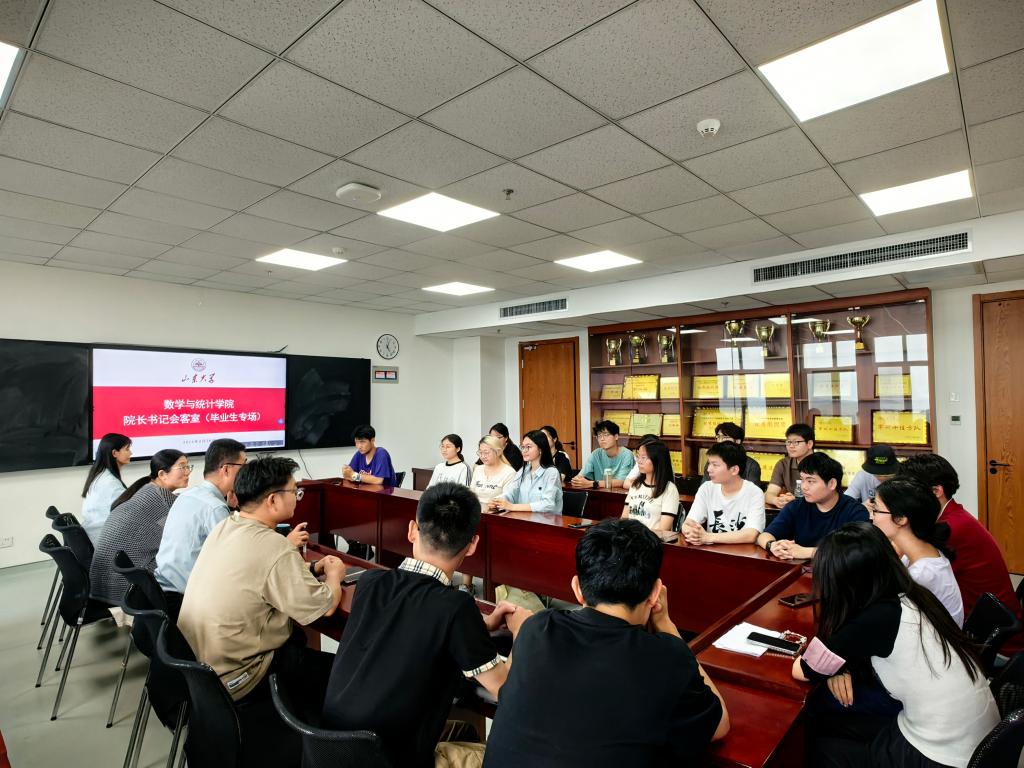 王鹏飞表达了对毕业生的殷切期望,从校友工作的重要性、学院校友工作现状、校友工作下一步开展计划等方面进行了分享。她表示,学院历来高度重视校友工作,将进一步搭建交流平台,促进校友与校友之间、校友与母校之间的沟通联络。校友班级理事和学生骨干是广大校友关注母校、支持母校发展的重要纽带,希望同学们毕业后加强与学院和同学的沟通,增进校友之间的情谊,常回家看看,做团结向上的山威数学人。