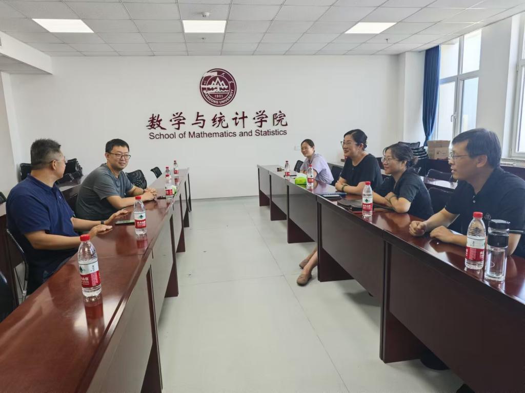 8月16日上午,济南校区数学学院工会主席王明强一行来访澳门十大网投平台排行开展工会工作交流。交流座谈会在北衡楼1421会议室举行,十大网投官网党委副书记兼工会主席王鹏飞、工会副主席穆增超、工会委员宋慧敏、胡琴琴参加活动。