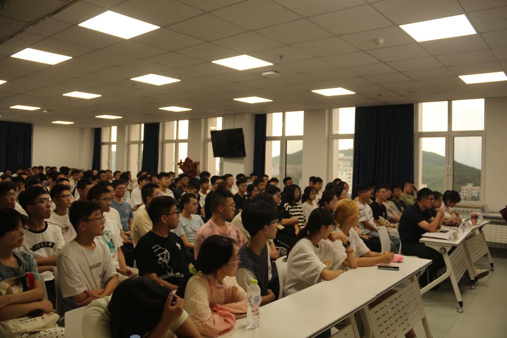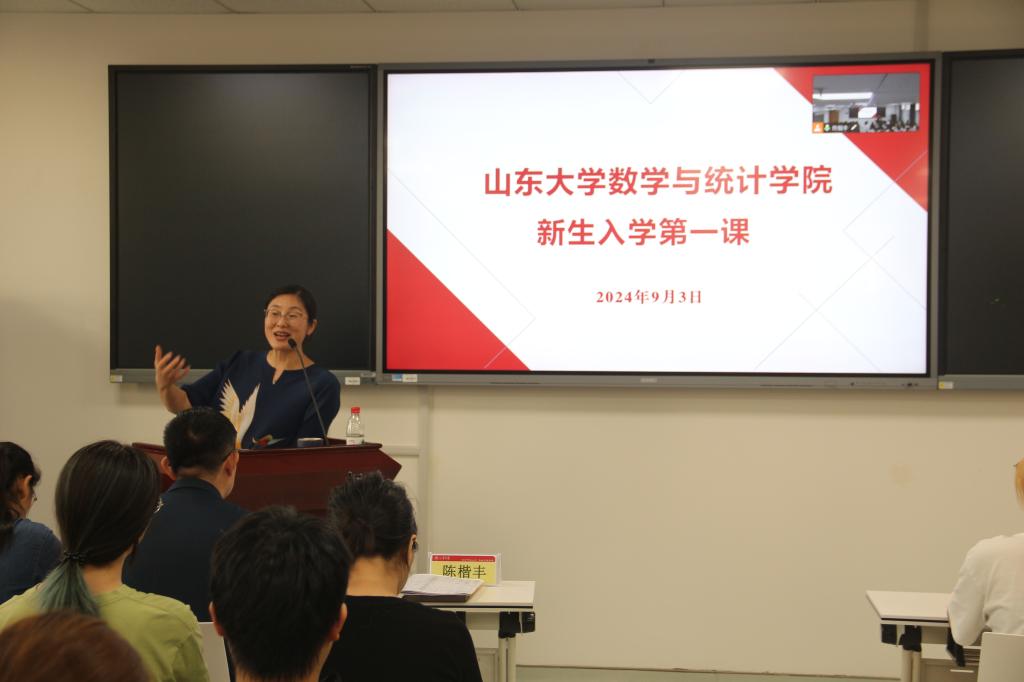 王鹏飞向新生表示了热烈的欢迎,她以“仰望星空谈梦想”“脚踏实地谈行动”“方圆纵横谈素养”为主线,引导学生立足当下、仰望未来、思考大学如何度过。谈到梦想,王鹏飞详细分析了数学专业的发展前景,指出目标不同,采取的行动会有差别,行动的张力也会有差异。她鼓励大家将个人发展融入国家发展战略需求,将自己的兴趣转化为大学学习的动力,志存高远,尽早确立目标,合理规划大学生活。谈到行动,她分析了大学和高中的区别,讲述了大学生活的不同状态,告诫学生幸运并非偶然,希望新生能积极利用学校丰富的学习资源,脚踏实地开展学习和工作,不断提升自己的综合实力。谈到素养,结合各类生动事例,王鹏飞提出新生要学自立,避免铺张浪费、相互攀比,要养成良好的日常生活习惯和学习习惯;要懂规矩,既要学习学校的各项规章制度,也要对大学生常用法律法规有所了解,还要遵守道德文明,尤其要遵守网络文明,不断培养提升自身素养;要担责任,既要有为国家图富强的社会责任感,也要有为自己行为负责的勇气和魄力;要学做事,抓住大学各个锻炼的平台,在实践中学习,不断总结经验、历练成长。最后,王鹏飞勉励同学们要培养看齐意识,追逐优秀,做好成长规划,在和同学同行过程中,不断超越,成就梦想。