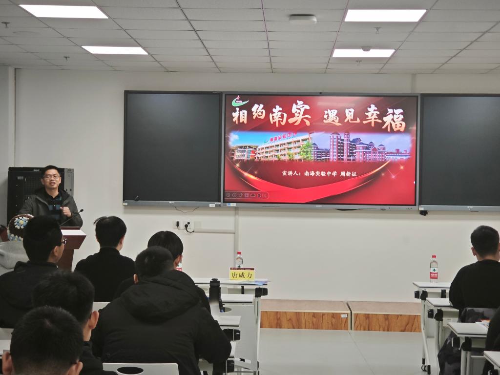 宣讲会上,唐威力对桂城街道的基本情况和各方面优势进行了全面介绍,他以城市、产业、人文三个维度为框架,深入解读了桂城的定位,并重点介绍了桂城的三大特色名片——公园城市、教育强镇、人才乐园。唐威力聚焦教育领域,详细分析了桂城教育的现状,特别强调了桂城对教育人才引进的重视,鼓励同学们积极参加佛山市南海区桂城街道教育领域的招聘考试,投身教育事业,实现个人价值。