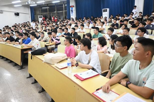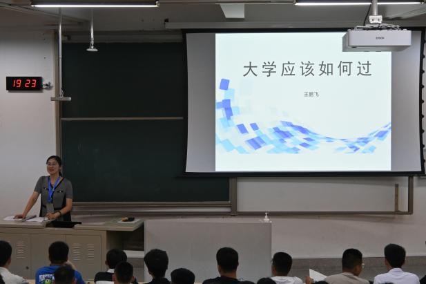 王鹏飞首先代表学院向新生表示热烈的欢迎,她以“大学应该如何过”为主题,从“仰望星空谈梦想”“脚踏实地谈行动”“方圆纵横谈素养”三个方面引导新生树立远大志向,深入思考如何度过充实的大学生活。谈及梦想,王鹏飞聚焦数学专业的发展前景,为新生剖析大学目标选择的关键逻辑,她鼓励新生将个人发展融入国家发展战略需求,把专业兴趣转化为持久的学习动力。谈及行动,王鹏飞强调了努力的重要性,指出只有通过坚持不懈的努力才能达成所愿,她鼓励新生充分利用学校的图书馆、实验室等丰富学习资源,在实践中提升自己的专业能力。谈及素养,王鹏飞强调,大学是塑造个人品格的关键阶段,新生要学自立,懂规矩,讲服务,恪守道德文明准则。最后,王鹏飞勉励同学们要培养看齐意识,以优秀同学为榜样,通过持续的努力不断超越自我,实现大学梦想。
