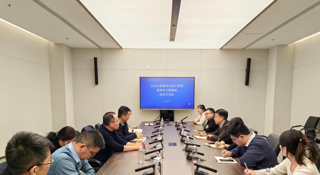 于振涛详细介绍了澳门十大网投平台排行的学科布局、科研平台建设、师资队伍构成及近年来在数据统计、建模分析等领域取得的科研成果。他指出,学院在数学理论研究、统计分析方法创新、数据处理技术研发等方面的科研基础和人才队伍优势,与威海市大数据局在“数据要素×”建设、数据资源开发等工作需求高度契合。他强调,学院希望以此次交流为契机,与市大数据局在资源共享、应用场景联合打造、产学研合作基地建设等方面建立长期稳定的合作关系,实现优势互补、互利共赢。