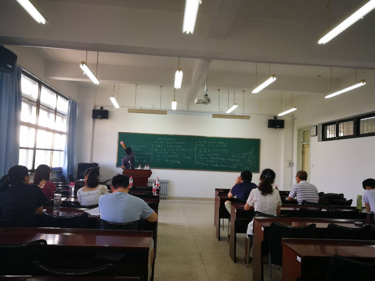 报告中,石荣刚从基础定义出发,首先回顾了实数的连分数展开与Hausdorff维数的定义;接下来,证明实数集的连分数展开次数趋于无穷的时候,实数集维数的情况;最后,讨论了由某些连分式展开性质定义的集合维数。石荣刚通过数形结合,深入浅出,层层逼近的方法,使得同学们对于某些较难理解的定义和证明产生了深刻的认识。此次报告使同学们对于动力系统领域的内容有了更多的了解,同学们收获颇多。
