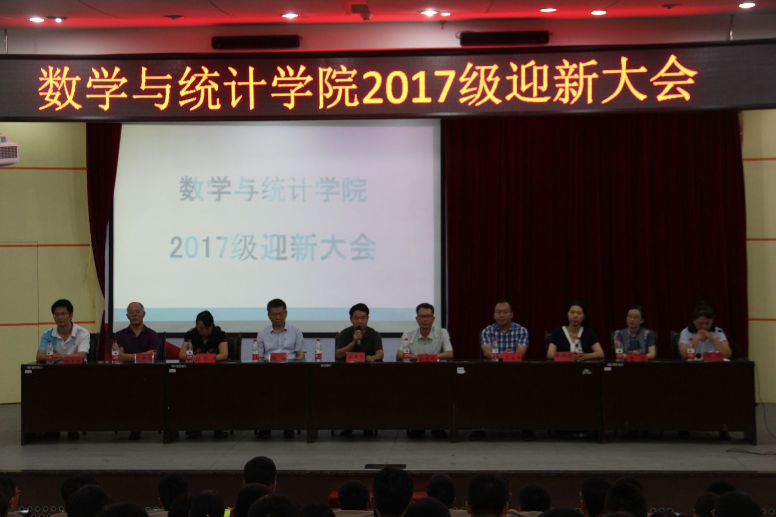 本站讯 2017年9月10日,十大网投官网于玲珑学堂举办2017级迎新大会。学院常务副院长綦建刚,党总支书记栗庆冬,副院长齐海涛、杨兵、党组织副书记单丙波,各系主任和辅导员以及2017级全体新生参加了本次大会。会议由2017级新生辅导员陈昕主持。