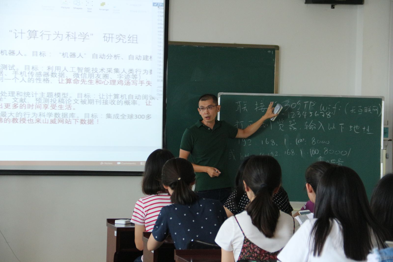 本站讯 2017年9月12日上午十点,十大网投官网于图东环楼304室举办“计算行为科学”研究组宣讲会。本次宣讲会由学院特聘教授郭亮主持,其本人也是“计算行为科学”研究组的负责人与带头人。学院2014级部分学生参加了此次宣讲会。