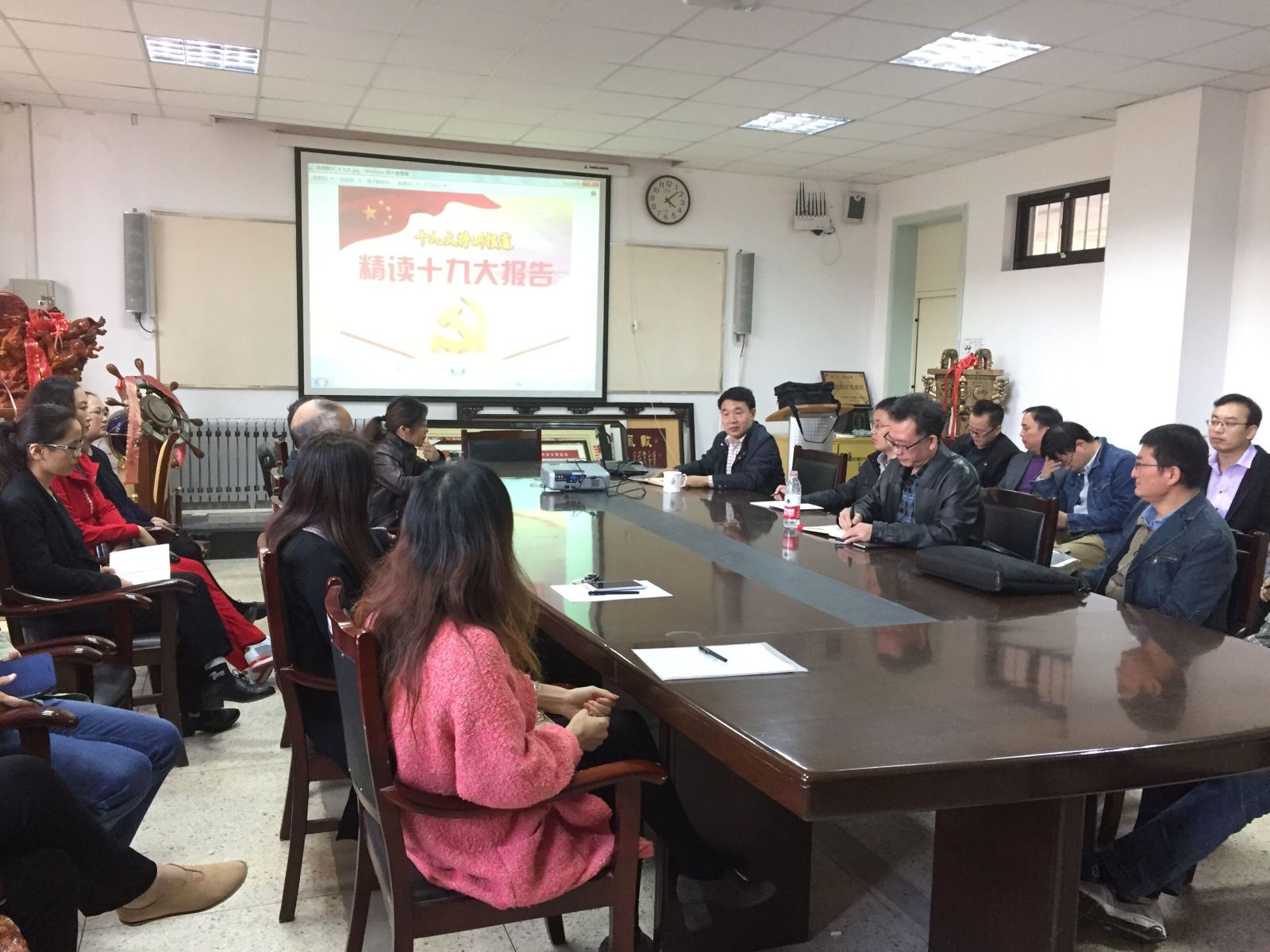 本站讯 10月19日下午,十大网投官网在图东环楼208室召开会议,集中学习党的十九大会议报告。学院无授课任务的教职工参加会议,会议由院党总支书记栗庆冬主持。