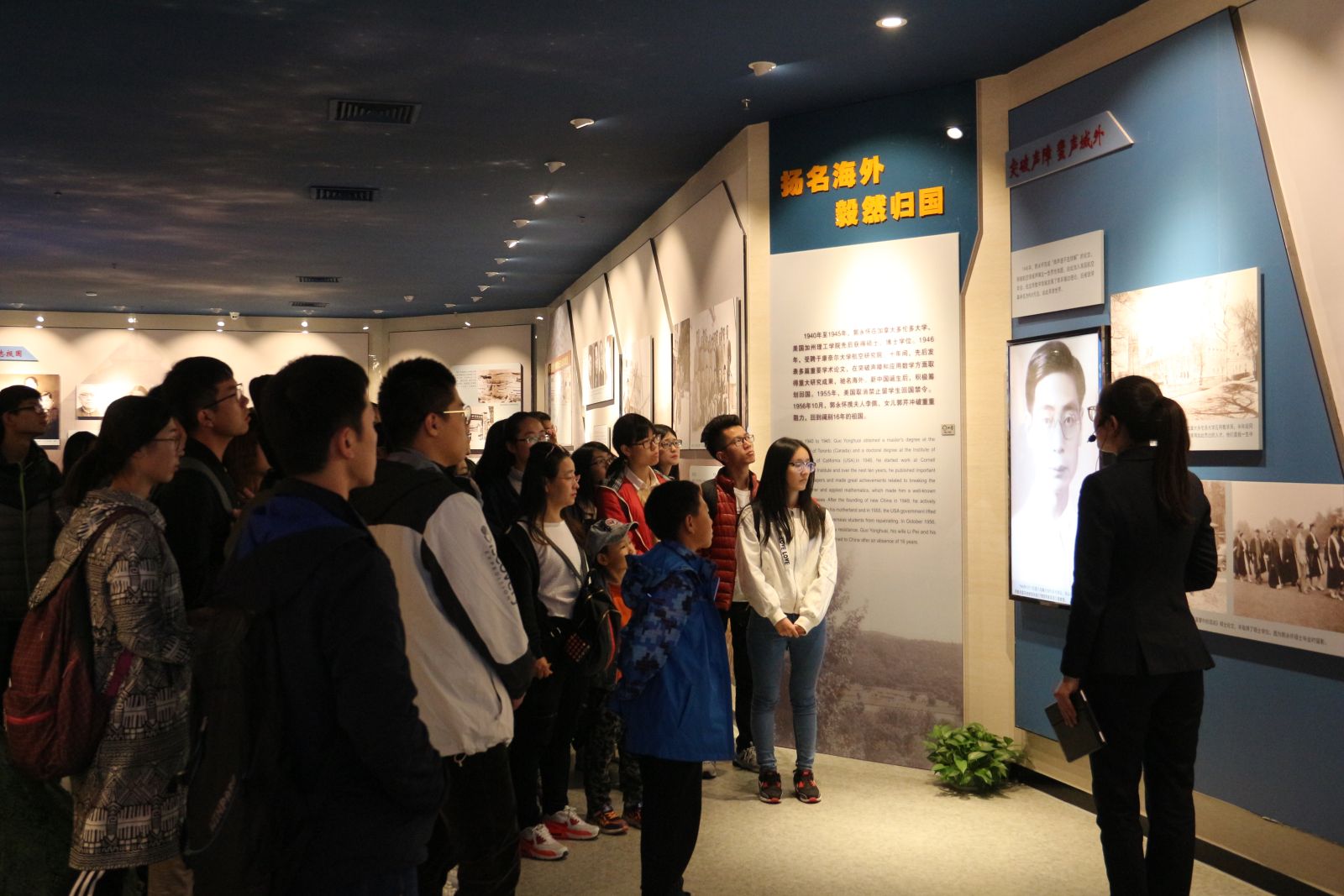郭永怀事迹陈列馆是全国重要的展示新中国科学家风采的展馆,共分8个展厅,陈列馆收集和整理了郭永怀同志相关的照片、著作文章、研究成果和影视资料,用500多张图片,200多件珍贵文物资料、4个视频记录展示了郭永怀同志的人生历程和科学成就。大家认真参观学习了郭永怀同志从少年艰苦求学到一步步成为世界瞩目的科学家,之后毅然选择回国报效祖国,最终以身殉国的事迹,全面地了解了郭永怀同志的英雄精神和为国献身的奉献精神。