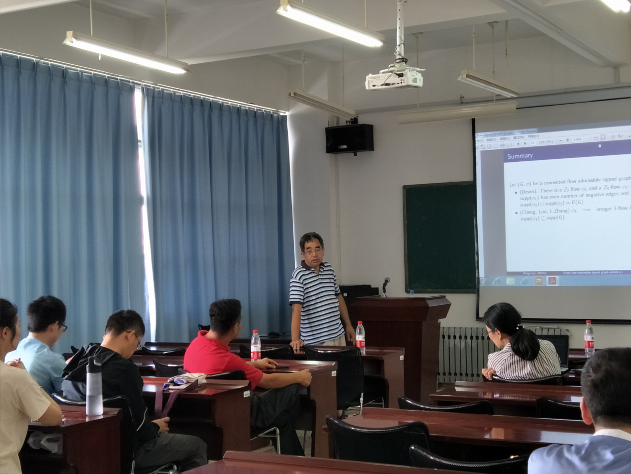 本站讯 2018年6月15日,美国西弗吉尼亚大学(West Virginia University, USA)数学系罗荣教授应邀访问十大网投官网院,开展了题为“Integer flows and modular flows of signed graphs”的学术报告,学院部分师生参加了此次报告会。