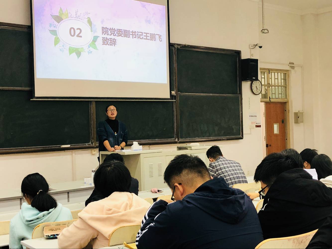 本站讯 11月1日下午,十大网投官网“积分筑梦”活动启动仪式在图东教学楼208举行。学院党委副书记王鹏飞,辅导员王紫山、赵德豪出席仪式,全体授课学员参加了此次会议。