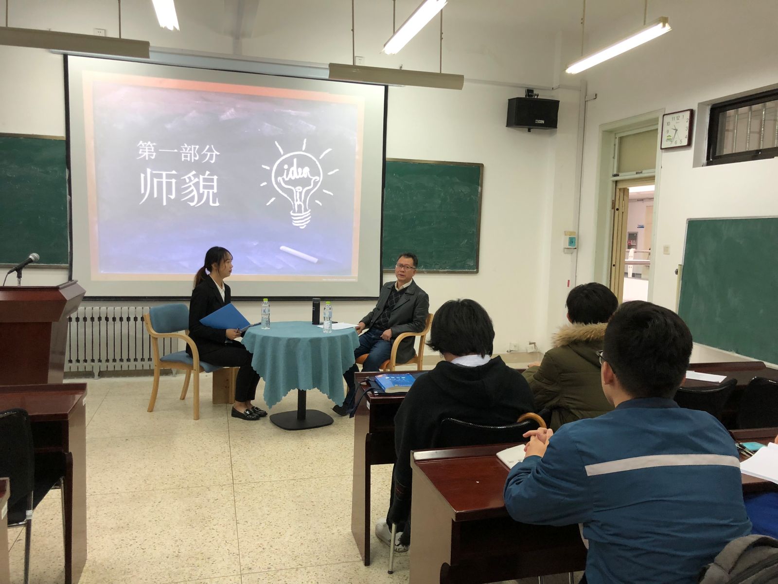 刘文婕介绍了本次讲座的主讲人綦建刚教授后,座谈会正式开始。活动共有“师貌”、“师经”、“师说”、“师语”四个部分。在第一部分“师貌”中,綦建刚以初中时期去公社参加考试的经历,讲述了不倦求索、戒骄戒躁在数学学习中的重要性,强调了学习的道路中个人的努力举足轻重的地位。“师经”与“师说”环节中,他谈到自本科至博士各个阶段的求学经历,通过对不同时期心态的对比,教育观众同学们学习要把握好自己的节奏,合理安排自己,并告诫观众学习应努力克服自己的惰性,要博览群书、纵通四海,丰富自我,提高思想境界,塑造健全人格。只要坚定学科自信,把眼界放长远,定能受益无穷。最后一个部分“师语”,綦建刚教授教导同学们学习应有战略,理论逻辑和熟练计算也应兼顾。随后,进入观众现场提问,当被问及热爱数学的感觉时,綦建刚答:“就是在烦恼时捧起一本数学书,闲暇时思考未解难题,会感到轻松与满足,这就是数学的魅力。”现场气氛热烈。最终,座谈会在观众同学热烈的掌声中结束。