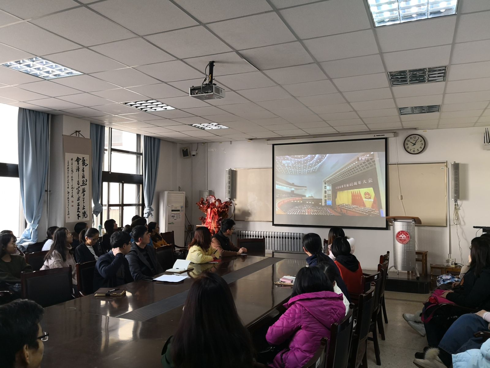 本站讯 12月18日上午10时,在庆祝改革开放40周年大会隆重召开之际,十大网投官网于图东环楼208会议室组织师生党员集体观看了大会直播。