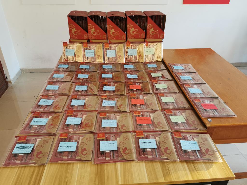 考研“福袋”由学院为考研学子特别定制,充满着故宫文化韵味 “福袋”内装有涂卡笔、签字笔等考试所需文具,“福袋”的外面还贴有来自于学院的祝福贺卡。在发放慰问品的过程中,王紫山和同学们亲切交流,详细了解考研学子近期的学习和生活状况,耐心听取同学们的心声,认真解答同学们的疑惑,帮助考研学子调整心态,增添信心。王紫山还鼓励同学们全力以赴,坚定信念,要在最后的几天里以轻松平和的心态扎实备考,以积极从容的态度迎接考试。此外,随着天气渐寒,王紫山提醒同学们要合理安排作息时间,注意饮食营养,做到劳逸结合,以最好的状态的为自己的考研之路画上圆满的句号。