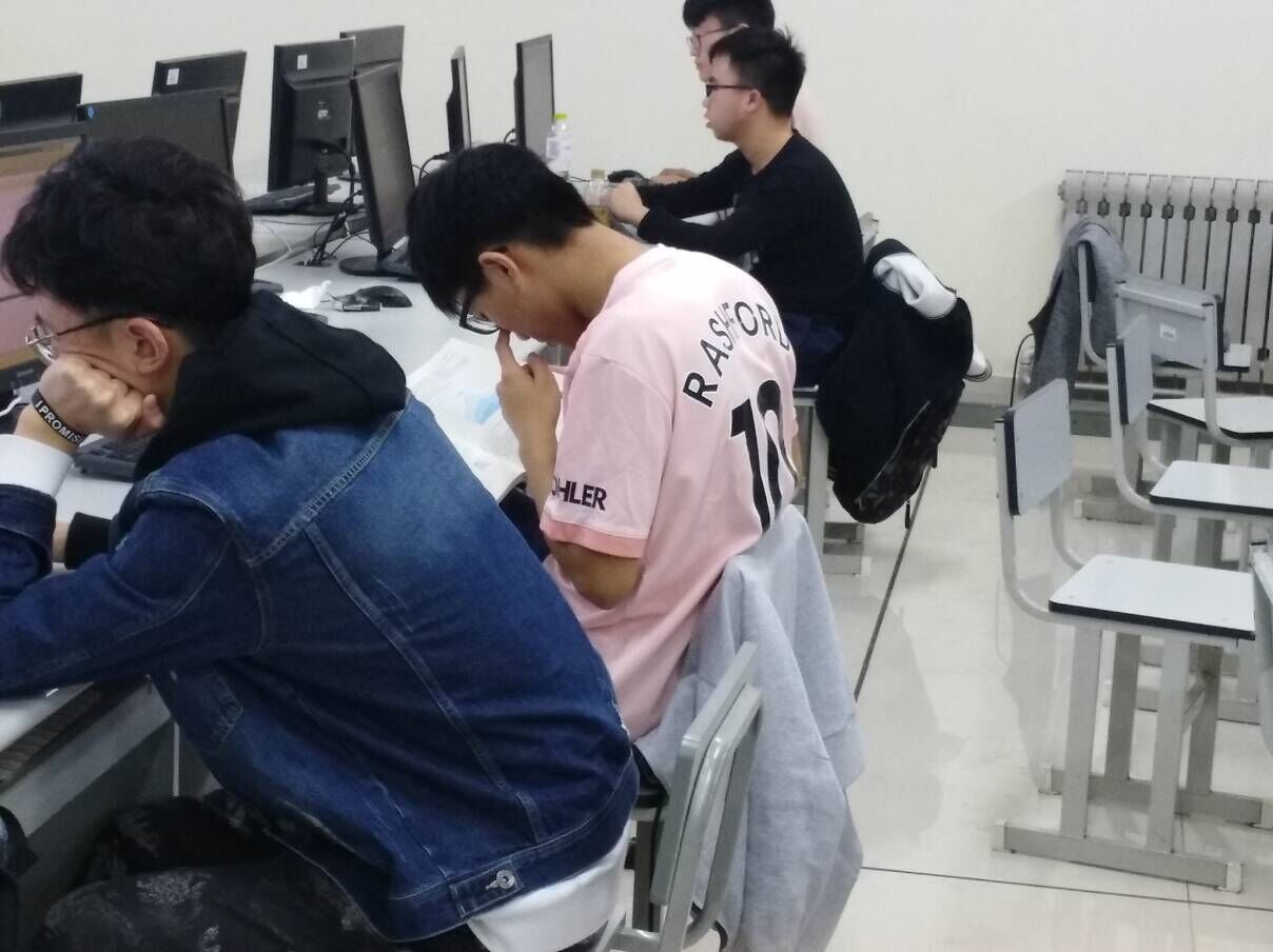 此次比赛共有四十人参加,两两组队共同参赛。下午一点半,两个协会的干事来到比赛地点,为比赛做好充分的准备,确保比赛所用的电脑设备正常使用。两点半参赛选手全部入场完毕。选手各自入座后,通过共享屏幕统一发送文件,随即比赛正式开始。比赛过程中,参赛者专心致志地思考解决自己的问题,无任何扰乱考场纪律的行为发生,整场比赛秩序井然。比赛于五点半结束,参赛者将自己的作品提交后,有序离场。协会的干事清理打扫比赛场地。