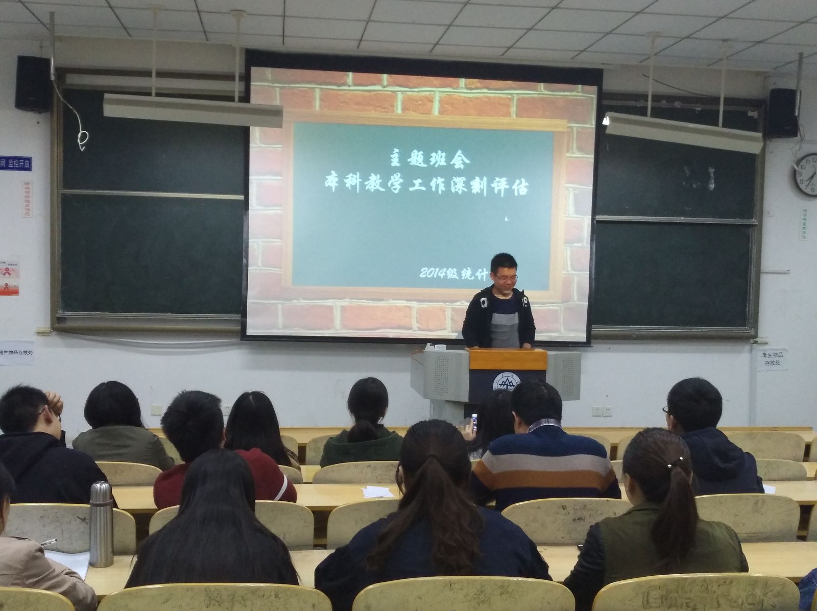 本站讯 10月16日晚19点,澳门十大网投平台排行2014级统计一班于图西教学楼219室举办了学习本科教学工作审核评估应知应会50问主题班会。本次会议由陈田同学主持,2014级统计一班共45人参加。