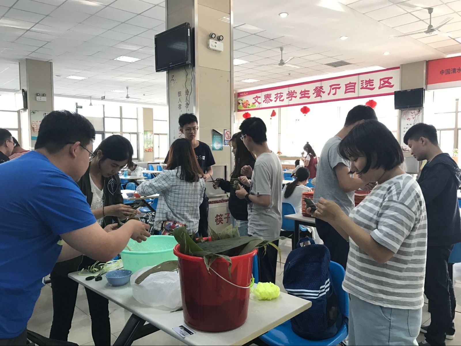 本站讯 5月26日下午5点,2016级统计二班在泰园餐厅举办“弘扬端午文化,传我浓情粽香”主题传统节日宣传活动,班级全体同学参与了此次活动,活动由团支书王璇主持。