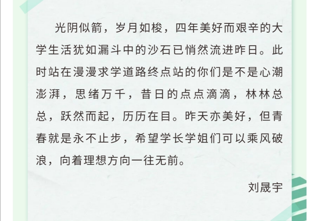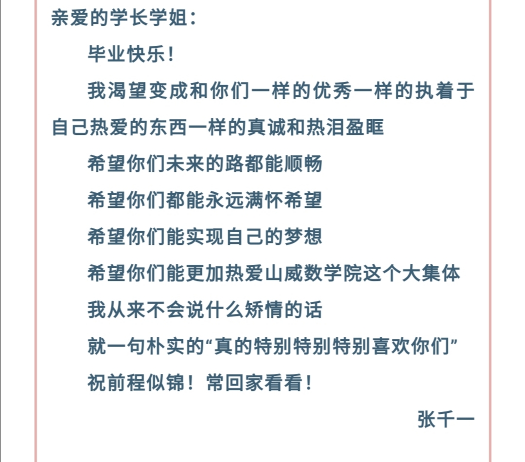 本次活动采用线上书信的方式开展。同学们的来信风格多样,主题各异。16级毕业生们或回忆自己大学四年以来的记忆点滴、或分享自己的成长体会、或重温所经历的回忆瞬间,或表达对学弟学们的殷切期盼,或怀念同学之间的深厚友情等,一字一句情感真挚,饱含真情。此外,17、18、19级的同学们也通过本次活动表达了对于离开母校的学长学姐们的真挚祝福,他们有人回味和学长学姐们度过的美好时光,也有人回忆了和学长学姐们的浓浓情谊,也有人表达了对学长学姐们的不舍之情,字语行间充满着对毕业生们的美好祝愿。本次活动在学生中取得良好反响,同学们积极参与,认真对待。同时,同学们在此次活动中,增进了对彼此之间的情谊,也对自身美好品质的培养具有一定益处。