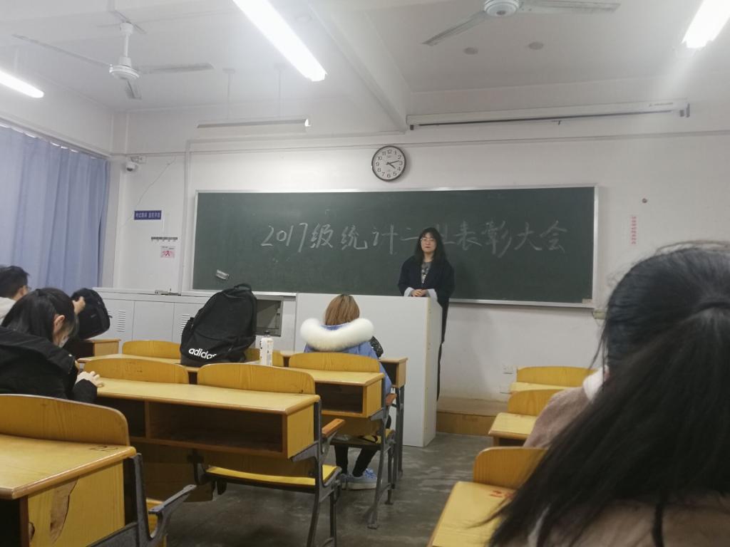 本站讯 2019年11月14日下午4点,2017级统计二班于图东316举办了班级先锋个人表彰大会。会议由团支书董书涵主持,班级全体同学参加。
