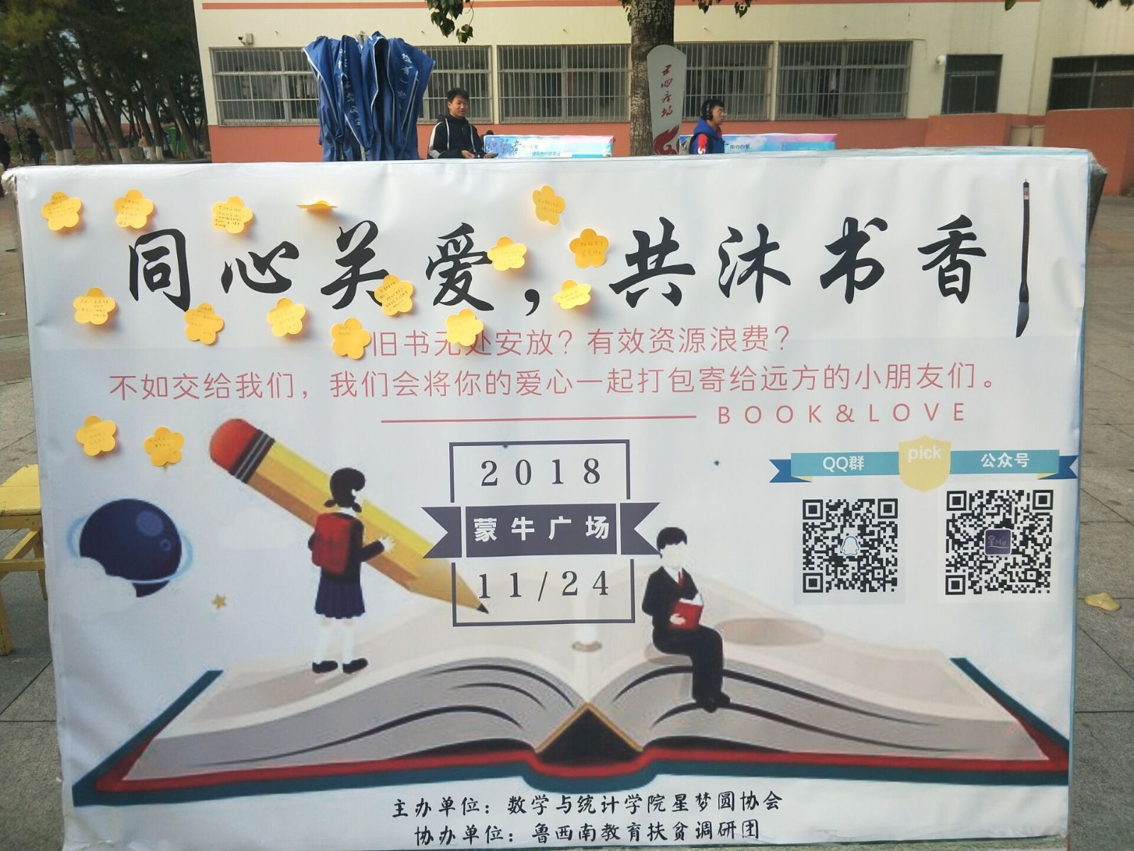 本站讯 11月24日,由十大网投官网星梦圆协会主办、鲁西南教育扶贫调研团协办的“同心关爱,共沐书香”捐书公益活动在蒙牛广场开展。星梦圆协会会长殷子涵及各部门干事参与了本次活动。