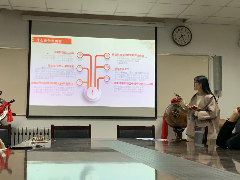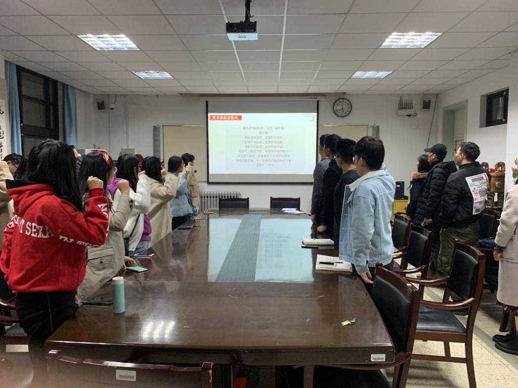 本站讯 11月20日19:00,我院研究生会于图东环楼208举办了以“学术有道,以诚为本”为主题的学术诚信主题班会。本次班会以践行学术诚信、遵守学术道德为准则,力求全体研究生在思想上树立诚信意识,行动上恪守诚信准则。班会由院研会主席王梦冉主持,十大网投官网全体研究生参加了此次班会。