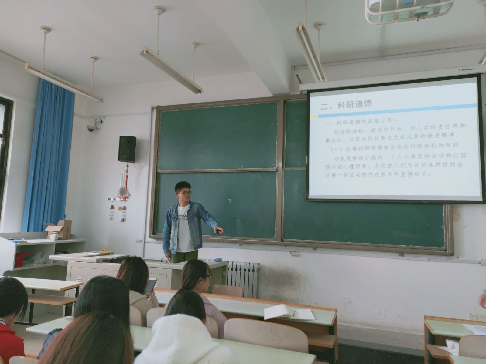 会议伊始,全体研究生认真阅读并签署了学术诚信承诺书,保证端正学风,实事求是,维护学术道德,反对学术不端。会上,刘振伟介绍了科学精神与科研道德的含义,并结合实例分析强调了学术诚信的重要性,以及违反学术道德对自身发展、乃至整个研究领域的重大影响。全体研究生一同观看了学术诚信教育视频,响应热烈。作为一名合格的研究生,应当保持严谨认真的科研态度,努力钻研学习,绝不走违反法律违反道德的捷径。
