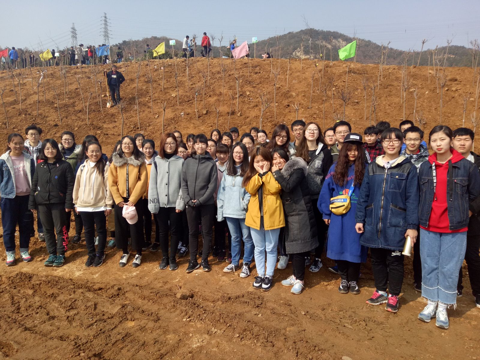 当天上午,志愿者准时在学校南门集合,乘车前往植树地点。抵达目的地后,大家在团队负责人的带领下领取工具,按照事先分配好的场地,每两人或三人一组开始植树。植树过程中,大家齐心协力挖土、搬运树苗,虽然工作繁重,但志愿者们分工明确,干劲十足,现场气氛十分热烈,完成任务较快的组及时分享了经验并主动为其他组提供帮助。尽管大多数志愿者是第一次植树,但在所有人的共同努力下,树苗很快全部栽种完成。值得一提的是,还有不少志愿者选择在便利贴上写下寄语,张贴在亲手种植的树上,在表达了自己植树感受的同时也为大自然送上了美好的祝愿。最后,所有志愿者一起合影留念,在一片欢声笑语中,植树活动圆满完成。