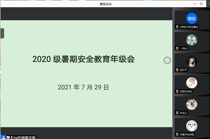 本站讯 为响应国家疫情防控政策,使学生合理、高效、安全地安排假期生活,贯彻学院“离校不离心,离校仍关怀”的方针。7月29日下午,澳门十大网投平台排行开展了2020级线上暑期安全教育年级会。本次年级会由辅导员魏佳佳主持,2020级全体学生参与。