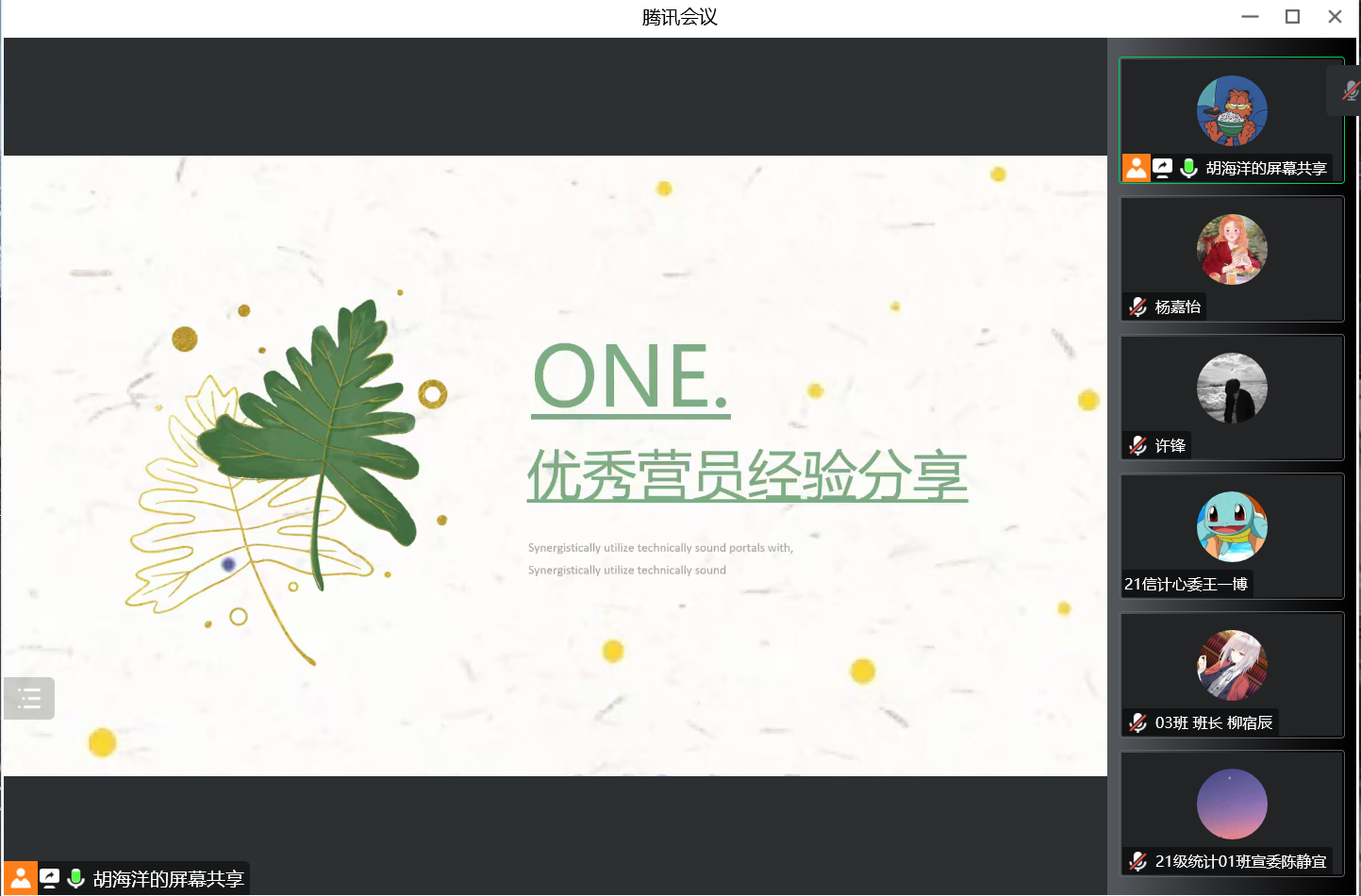 本站讯 11月20日下午,澳门十大网投平台排行于线上腾讯会议举办学生干部成长营第三期之“青春心向党,奋斗正当时”活动。本次活动邀请了20级优秀营员许锋、曹祎芯,2021级、2022级全体班委参加此次活动。