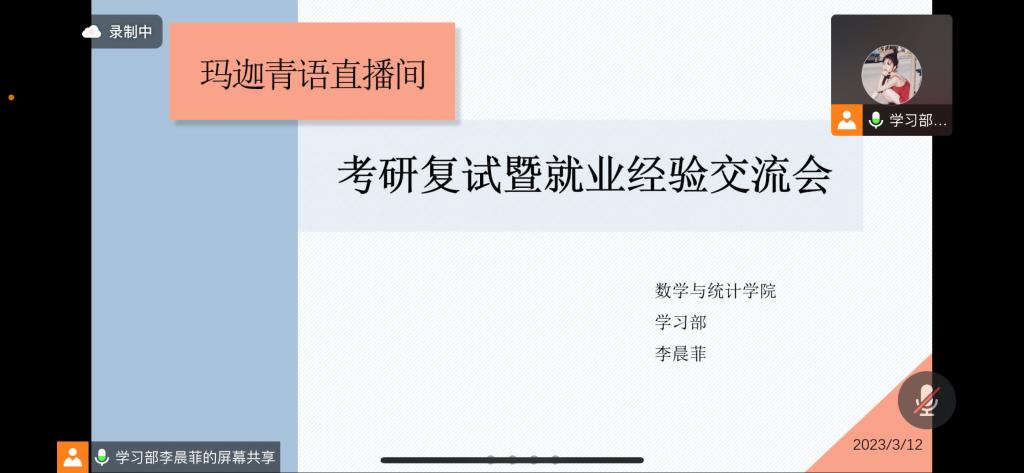 本站讯 在大四学生面临考研复试和就业难题的关键时期,澳门十大网投平台排行于3月12日晚成功举办“玛珈青语直播间之考研复试暨就业经验交流会”,帮助毕业生积极备考、吸收经验。本次经验交流会共邀请了四位在考研或就业方面获得成就的校友进行进行经验交流与分享,近百名同学通过线上直播的方式参与会议。