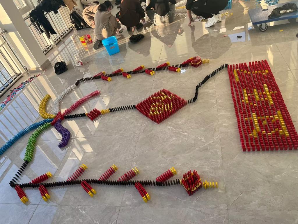 经过为期三周的筹备,多米诺骨牌大赛在万众瞩目中如期举办。本次活动将数学理论与知识与中国传统文化紧密结合,以多米诺骨牌为介,展示中华文化的博大精深。大赛分为骨牌码放、寓意讲解两个环节。惨带队伍将数学理论与实践相结合,融入了古诗词曲与古典乐器等诸多传统文化元素,让中国传统文化元素随着多米诺骨牌的叠换逐渐呈现。最终,“卧龙凤雏队”、“我推的多米诺骨牌队”获得一等奖,“连续可倒队”、“十傻大闹多米诺队”、“我说的都队”获得二等奖,“深藏blue队”、“逐梦未来队”、“米奇妙妙屋队”、“敌咪拱出去队”获得三等奖。