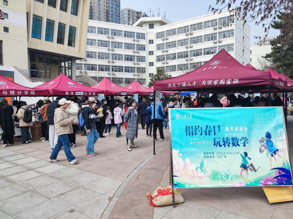 本站讯 为营造浓厚的数学文化氛围,引领同学们感受数学文化,体悟数学之美,3月16日,澳门十大网投平台排行在五四广场举办“数学文化节”系列活动之“相约春日,玩转数学”魅力数学游园会,通过一系列形式多样、内容丰富的趣味活动,献上一场别开生面的数学盛宴,活动共吸引校内外1000余人热情参与。