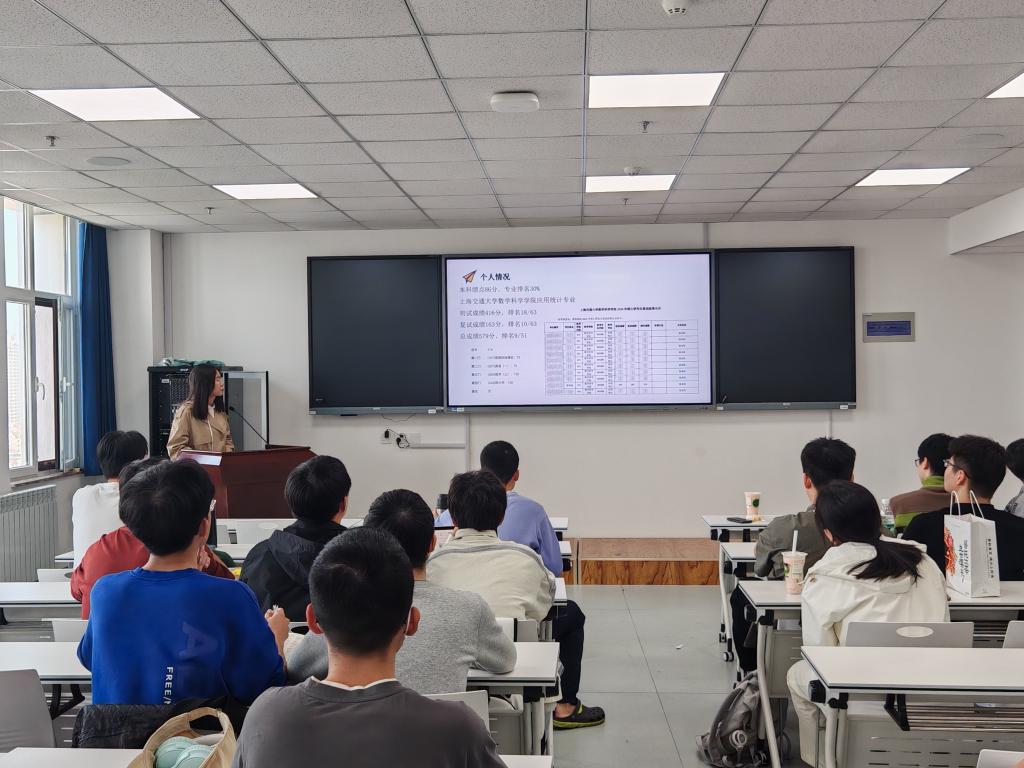 本站讯 4月28日下午,澳门十大网投平台排行于北衡楼1420室举办第二十三期励志周末活动,本期活动主题为“‘研’途追梦,学海无涯”。2020级统计学专业本科生曹若涵、林京园,2020级数学与应用数学专业本科生谭宇森,2020级统计学(数据科学与人工智能)专业本科生刘文垚应邀进行考研经验分享。学院60余名学生参加了本次活动。