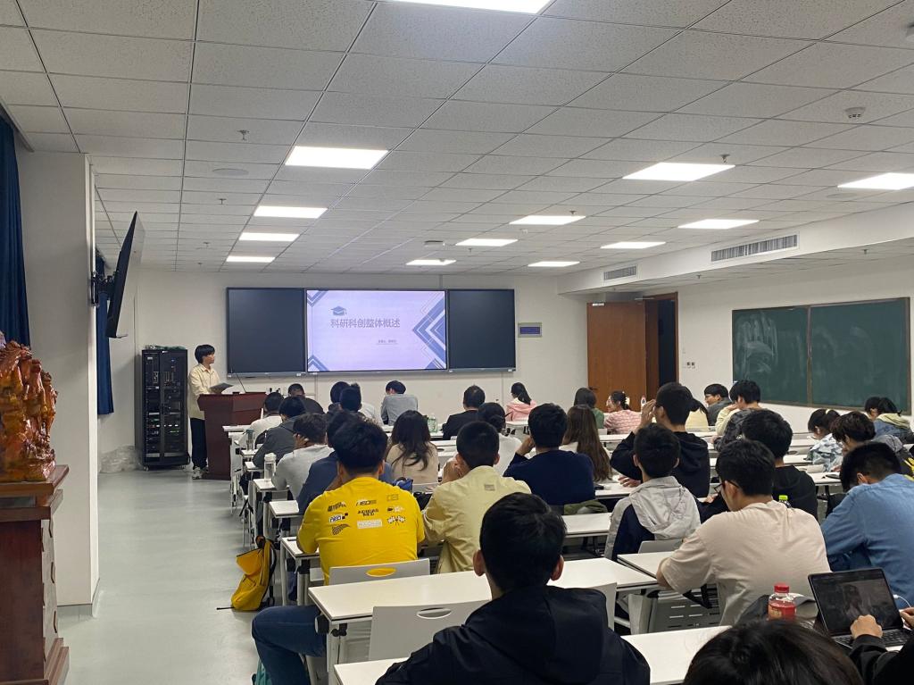 会议伊始,柳宿辰以科研立项概述入题,对科研立项的项目类别和整体流程进行了介绍,并对整个学年的科研创新活动时间线进行了梳理。王童和范少飞分别结合个人经历分享了关于撰写立项申请书以及立项选题的经验。随后,王昊天通过讲述自己担任科研立项项目队长的经历,详细地介绍了科研立项过程中的整体计划和分工安排,对项目实施提出了许多实用建议。吴铭威以自身参与科研立项的选题为例,分享了其项目推进过程及其取得的项目成果。宋绪涛对本次交流会的内容进行了系统总结,结合科研带给自己的收获,呼吁同学们积极参加科研立项。在互动交流环节,柳宿辰梳理展示了活动前所搜集的学生问题,各位主讲嘉宾进行了耐心细致的解答。