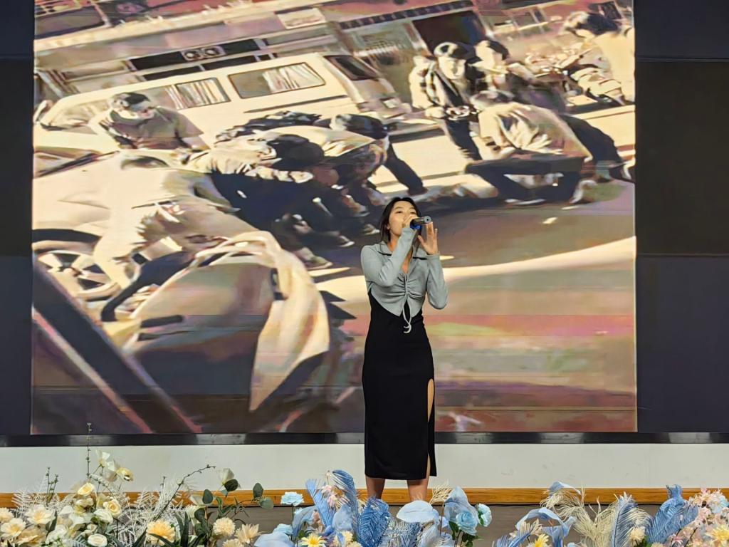 经过初赛、复赛的激烈角逐,12名选手晋级决赛。本次决赛共分为两轮,第一轮比赛由各位选手分别邀请一位帮唱嘉宾助阵,共同演唱,为观众带来《手心的蔷薇》《野子》《baby》等风格各异的佳作。中场休息期间,威海市音乐家协会会员、澳门十大网投平台排行(威海)艺术学院青年合唱团声部长叶一可,澳门十大网投平台排行(威海)艺术学院青年艺术团团长范肖楠作为特邀嘉宾,共同献唱《美丽的神话》,将全场氛围推向高潮。首轮比赛后,焦雅雯、王起发、李昊宇、王宇婷、黄健欣、林小琪和宫宝琪7位选手进入第二轮角逐。从引燃全场的《Bang-Bang》,到充满不舍的《最后一页》,从叙事感极强的《流浪记》,到回忆感满满的《起风了》,他们用绝佳的唱功和真挚的感情展现出音乐的独特魅力。经过评委打分和观众投票,最终焦雅雯获得冠军,王宇婷获得亚军,林小琪获得季军,其余参赛选手中,四名同学获得二等奖,五名同学获得三等奖。