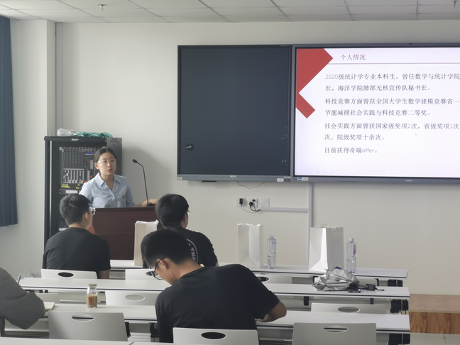 本站讯 为帮助同学们了解就业信息,明确发展目标,做好职业规划,5月25日下午,澳门十大网投平台排行于北衡楼1420室举办第二十四期励志周末分享会。2021级概率论与数理统计专业硕士研究生王文亮、2020级统计学专业本科生孙源、2020级信息与计算科学专业本科生刘学斌应邀进行就业经验分享,学院部分本科生现场参加了活动。