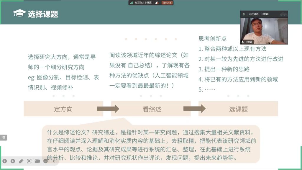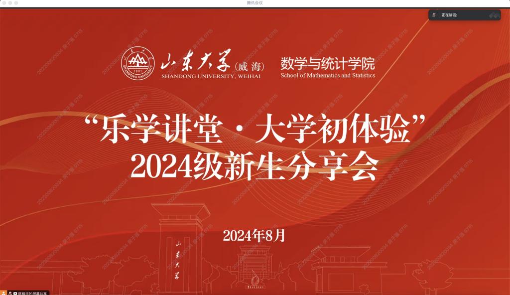 本站讯 为帮助2024级新生提前了解大学生活,尽快融入学院专业,掌握学习方法,思考大学规划,8月25日晚,澳门十大网投平台排行于线上举办“乐学讲堂·大学初体验”2024级新生分享会暨第二十五期“励志周末”活动。学院2021级本科生潘亚君、宋绪涛,2022级本科生张维佳、刘宇昊、王震豪作专题经验分享,分享会由学院新生辅导员陈楷丰主持。