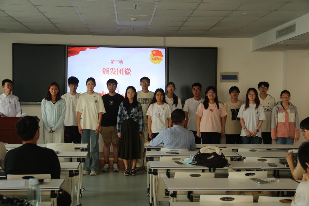 入团仪式在庄严的国歌声中拉开帷幕,主持人宣读了新团员名单,各班团支书为新团员佩戴团徽。在鲜红的团旗下,领誓人周家杰带领7名新团员集体宣誓。新团员代表吴佳圣讲述了自己对共青团的认识,表达了将以更高标准严格要求自身,践行团员责任、发扬集体主义精神的坚定信念。团员代表王紫娴则结合自身成长经历,鼓励新团员铭记初心,传承和弘扬共青团的优良传统,在生活中发挥先锋模范作用。陈楷丰代表学院团委对新团员的加入表示热烈祝贺,他勉励同学们坚定理想信念、锤炼坚强意志,努力成长为堪当民族复兴重任的时代新人。最后,全体起立奏唱中国共产主义青年团团歌,入团仪式圆满结束。