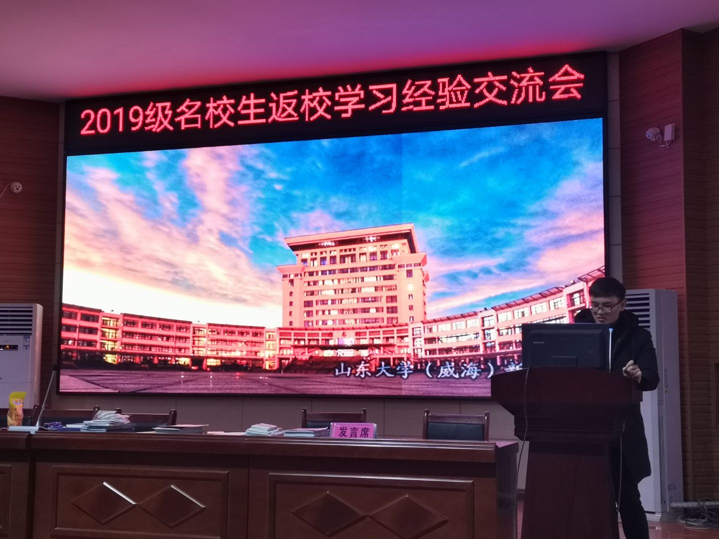 在正式回访前,本团队与其他返校宣讲团队与舞钢市第一高级中学诸位领导协商,最终确定于1月15日上午在学校报告厅进行宣讲。由于宣讲开始时间与放学时间相同,且舞钢市第一高级中学规定学生自愿前往听取宣讲。为吸引更多学弟学妹前往报告厅听取宣讲,本团队与其他返校宣讲团队合作,共同劝说同学们前往报告厅,吸引了大量学生前来听讲。本团队成员向学弟学妹们重点介绍了澳门十大网投平台排行的本科教育、一校三地八校区的发展战略及澳门十大网投平台排行威海校区在河南省的历年录取情况,同时还向学弟学妹们展示了澳门十大网投平台排行厚重的历史文化底蕴以及威海作为宜居城市所拥有的优美环境、威海校区的国际化办学特色和浓厚的学术氛围。在宣讲过程中,宣讲人与学弟学妹们的互动较为频繁,宣传效果明显。宣讲结束后,团队成员向学弟学妹们发送了印有澳门十大网投平台排行威海校区校园美景的明信片及其它小礼品,并与学弟学妹们进行面对面的交流。至此,团队走访舞钢市第一高级中学的活动结束。